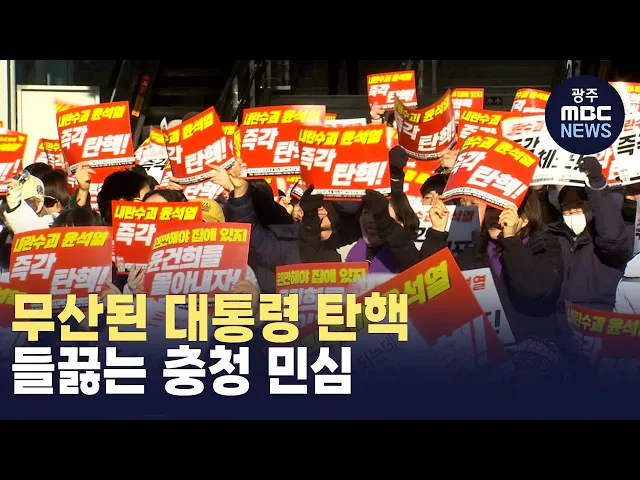 (앵커)네 지금부터는 전국 각지에서 진행된탄핵안 무산에 따른 민심을 전하겠습니다.대전에서는윤석열 대통령에 대한 탄핵소추안 표결이 국민의힘 의원들의 불참으로 무산되면서이들에 대한 비판이 쏟아지고 있습니다.대전문화방송 윤소영 기자입니다.(기자)"체포하라! 체포하라! 체포하라!"분노한 시민들의 외침이 대전역 ...