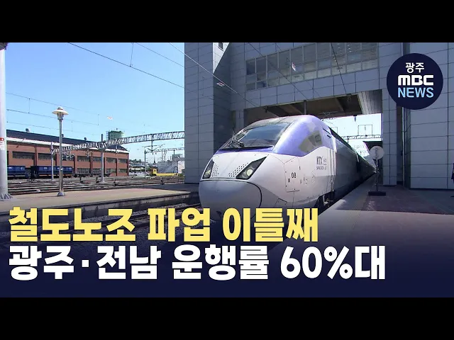 전국철도노조가 이틀째 파업에 들어간 가운데광주전남 지역의 열차 운행률은 60%대가 되겠습니다.광주*전남에서는 KTX 16편과무궁화*새마을호 등 일반 열차 15편이운행을 멈췄고, 평시 대비 운행률은 66%로 집계됐습니다.코레일 측은 이용객의 불편 최소화를 위해인력 등을 충원해 열차 운행 횟수를 최대한 확보할 방침입니...
