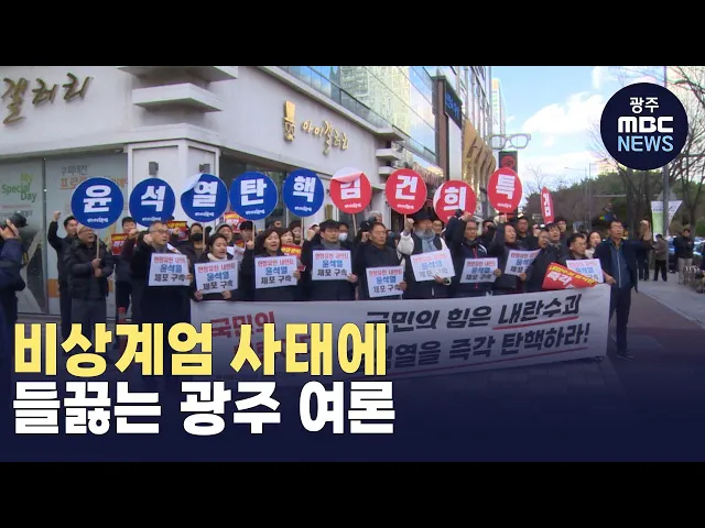 (앵커)비상 계엄 사태 이후윤석열 대통령의 퇴진과탄핵을 요구하는 목소리가지역 내에서도 커지고 있습니다.시민들 뿐만 아니라 시민단체,그리고 5월 단체들도윤 대통령의 잘못을 조사해책임을 물어야 한다고 성토했습니다.송정근 기자입니다.(기자)비상계엄 사태가 끝났지만시간이 지날수록 광주시민들에게는그 여진이 증...