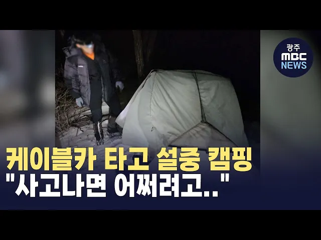 (앵커)광주전남에는 최근 눈이 없었지만수도권과 강원도에서는 폭설이 내렸죠.캠핑족들 중에는오히려 이런 눈을 찾아 산을 찾는이들이 있습니다.케이블카를 타고 해발고도 1400미터가 넘는정상에 올라 캠핑을 즐기곤 하는데,사고 위험이 높아 주의가 필요해 보입니다.원주문화방송 유주성 기자가 취재했습니다.(기자)눈 밭 ...
