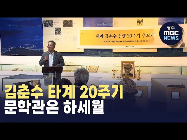 (앵커)꽃의 시인 김춘수 선생의 타계 20주기를 맞아 그의 고향 경남 통영에서는 소박한 추모식이 열렸습니다.귀중한 유품을 기증받은 통영시는 아직 문학관 건립을 하지 못해 임시건물인 유품전시관만15년째 운영되고 있습니다. MBC경남 김태석 기자입니다. (기자)'내가 그의 이름을 불러주기 전에는 그는 다만 하나의 몸짓...