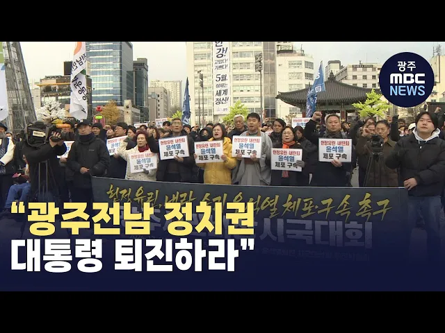 (앵커)지난 밤 비상계엄 이후 지역 정치권과 시민단체 등은일제히 윤석열 대통령퇴진 운동에 돌입했습니다.밤사이 비상계엄이 선포되면서광주 31사단은한때 바쁘게 움직였습니다.보도에 김영창 기자입니다.(기자)지역시민사회단체들은 아침부터 분주히 움직였습니다."헌정 유린, 내란 수괴,윤석열 대통령을 당장 체포하라! ...