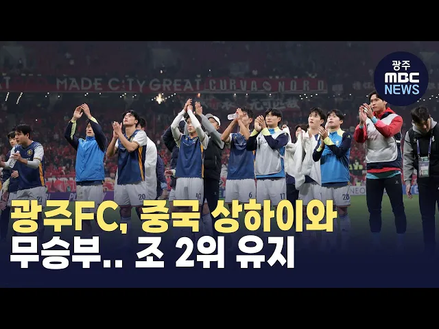 프로축구 광주 FC가아시아 챔피언스리그에서중국 상하이 하이강과 무승부를 거두며조 2위 자리를 유지했습니다.광주FC는어제(3) 열린 중국 상하이 하이강과의 경기에서전반 허율의 선취골로 앞서갔지만,후반 30분 페널티킥 동점골을 내줘1대 1로 무승부를 거뒀습니다.광주FC는후반 상대 선수가 퇴장 당한 이후숫적 우세속에...