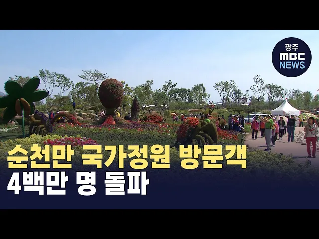 순천만 국가정원이 재개장 8개월 만에 관람객 4백만 명을 돌파했습니다.순천시는 지난 4월 국가정원 재개장 이후 누적 관람객이 4백만 명을 넘어섰으며, 입장료 수입은 110억 원을 기록했다고 밝혔습니다.순천시는 연말 분위기에 맞게 국가정원을 새롭게 단장하고 다양한 체험 프로그램을 마련해 방문객들의 만족도를 높이...