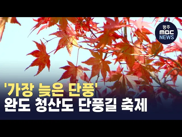 우리나라에서 가장 늦게 단풍이 물든다는완도 청산도에서 오는 29일부터 12월 2일까지단풍길 축제가 열립니다.청산도 단풍길은 30년 된 단풍나무가 3킬로미터 도로 양쪽으로 터널 형태를 띠고 있어 드라이브 코스로인기를 끌고 있으며,완도군은 단풍길을 찾은 관광객들에게 기념사진 촬영과 인화 서비스를 무료로 제공할 예...