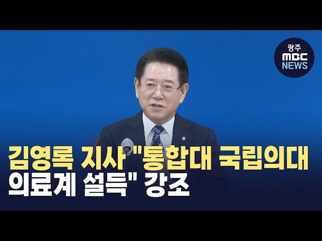 김영록 전남지사가 "통합대학교 국립의대 설립을 위해 의료계가 지역의료 완결체계 차원에서 수용하도록 설득하자"고 강조했습니다.김지사는 오늘 도청에서 열린 실국장 회의에서"국립의과대 없는 전남은 일반적인 의료계의 증원반대 논리와는 아주 다르다"며 이같이 밝혔습니다.의료계기 전남도의 통합대학 국립의대 추진...