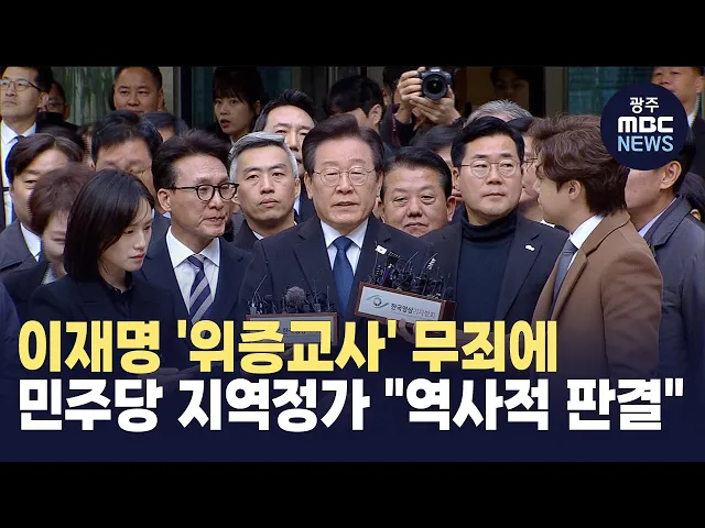 이재명 더불어민주당 대표의 위증교사 혐의 재판 1심 무죄 선고를 두고지역의 민주당 국회의원들이 “사법부의 현명한 판단”이라는 목소리를 냈습니다.주철현 민주당 최고위원은 취재진과의 통화에서"검찰의 이재명 죽이기에 철퇴를 가한 역사적인 판결"이라며 "4기 민주정권 창출을 위해 흔들림 없이 전진할 것"이라고 말했...