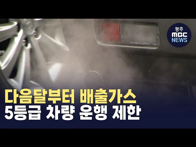다음달부터 저공해 조치를 하지 않은 배출가스 5등급 차량은 운행이 제한됩니다.광주시는 다음달 1일부터 내년 3월 31일까지를 제6차 미세먼지 계절관리기간으로 설정하고 배출가스 5등급 차량 운행을 제한하기로 했습니다.단속 시간은 평일 오전 6시부터 밤 9시까지고 감시 카메라에 적발된 차량에 하루 10만원의 과태료를...