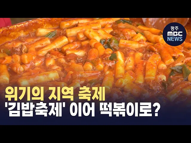 (앵커)외부 방문객이 줄면서 많은 지역 축제가 위기를 겪고 있는 가운데, 경북 김천시의 '김밥축제'가 큰 성공을 거두며 이목을 끌고 있습니다.젊은 세대를 겨냥한 기획으로 떡볶이 등을 주제로 한 비슷한 시도도 관심을 끌고 있는데, 변화를 위한 깊은 고민이 필요하다는 지적입니다.전주문화방송 허현호 기자입니다.(기자...