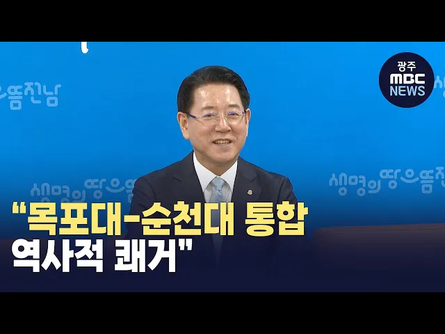김영록 전남지사는 목포대와 순천대가 통합에 합의한 것은 역사적 쾌거라며 전폭적인 지원을 약속했습니다.김지사는 오늘(18일) 전남도청에서 기자간담회를 갖고 "지난 15일 밤 역사적 쾌거가 이뤄졌던 보고를 받았을 때 너무도 가슴이 떨리고 정말 감격했다"라며 "나라 전체적으로 봐도 굉장히 큰 선도적인 선례를 만들었...