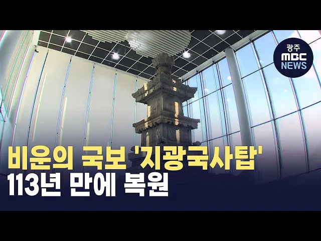 (앵커)일제에 의해 무단 반출되고,6.25전쟁으로 크게 훼손되며 수난을 겪었던비운의 국보 '지광국사탑'이 복원돼일반에 공개됐습니다.무려 113년 만에 아름다운 모습으로 제자리를 찾았습니다.원주문화방송 유나은 기자가 보도합니다.(기자)국보 '지광국사탑'이 가림막을 벗고위용을 드러냅니다.높이 5.39미터, 무게 39.4톤...