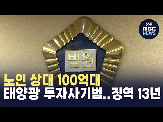 광주고법 형사2부 이의영 판사는 전남 지역 농촌에서 100억원대 태양광 투자사기를 벌인 혐의로 46살 남성 구 모씨에게 징역 13년을 선고하고33억원의 추징 명령을 내렸습니다.같은 혐의로 기소된 37살 남성 김 모씨에게는징역 5년을 선고 했습니다.이들은 지난 2021년부터 2022년 사이 전남 지역의 농촌에서 노인 500여 명...