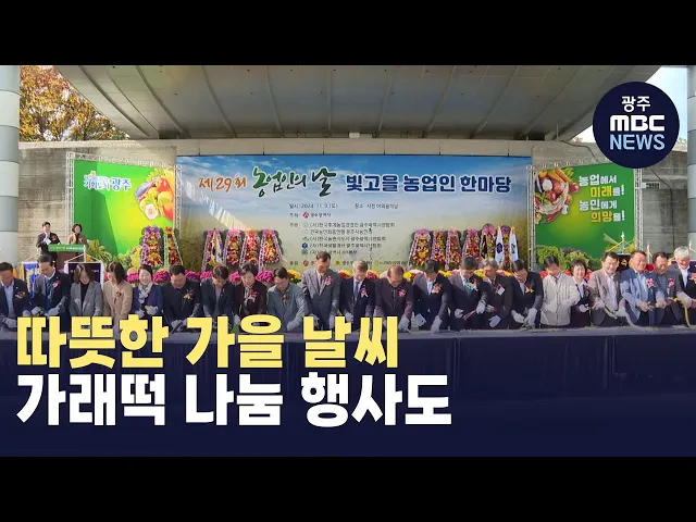 (앵커)가을 날씨가 찾아온 주말, 시민들은 더 추워지기 전에 나들이를 즐겼는데요.농업인의 날을 앞두고 11미터짜리 가래떡을 나눠먹는 행사도 열렸습니다.임지은 기자가 전해드립니다. (기자)무등산 산자락이 듬성 듬성 단풍색으로 물들고 있습니다.아직 초록잎과 낙엽잎이 절반이지만 탁트인 하늘 아래 가을 청취는 가득...