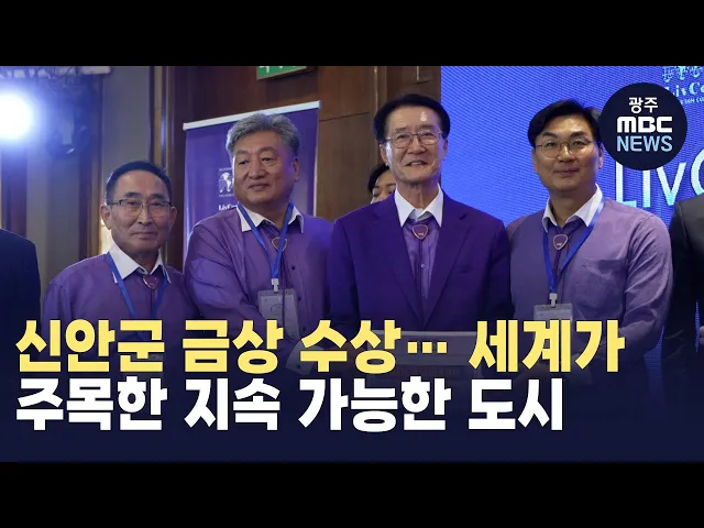 (앵커)신안군이 살기좋은 도시를 선정하는 2024 리브컴 어워즈에서 금상을 수상했습니다.생태도시와 삶의질 향상을 위한 신안군의 노력들이 국제사회로부터 인정을 받았습니다.신광하 기자가 보도 힙니다. (기자)"금상에는 신안군 입니다."'살기좋은 도시'를 선정하는 리브컴 어워즈가 올해 수상 도시로 전남 신안군을 선택...