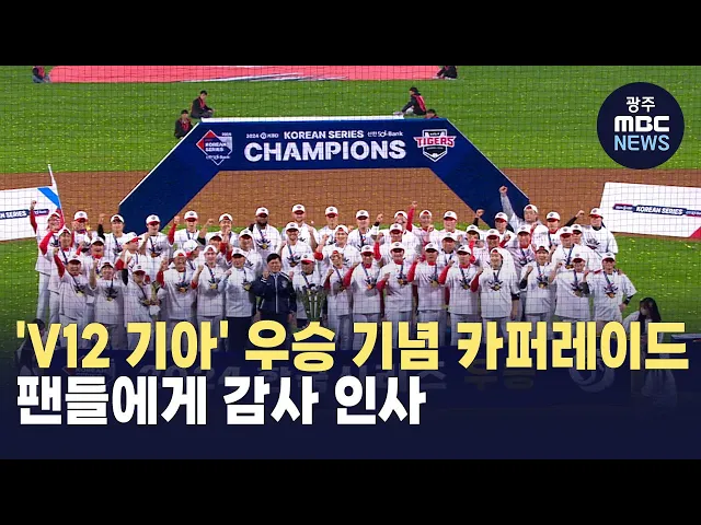 V12를 달성한 기아타이거즈 선수단이오는 30일 광주 도심에서우승 기념 카퍼레이드를 펼칩니다.광주시에 따르면김대중컨벤션 센터에서 열리는팬과 함께하는 축하 행사에 앞서이범호 감독과 우승 주역 선수들은차량에 올라 거리를 행진하는카퍼레이드를 1시간 정도 진행할 예정입니다.카퍼레이드 1989년 5번째 우승을 달성한...