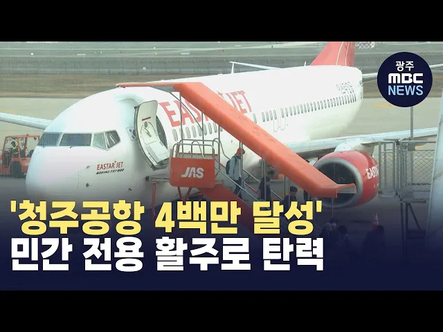 (앵커)청주국제공항이 개항 이래 처음으로 이용객 4백만 명 달성을 눈앞에 두고 있습니다.지방공항 가운데 4번째로연말이면 470만 명도 가능할 거란 전망이 나오는데요.수요를 입증한 만큼 민간 전용 활주로 신설과 이를 위한 특별법 제정도 탄력을 받게 됐습니다MBC충북 정재영 기자입니다.(기자)개항 당시 37만 명으로 출...