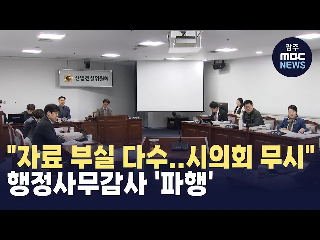 (앵커)제9대 광주광역시 시의회가후반기 첫 행정사무감사를 진행하다감사를 중단하는 일이 발생했습니다.광주시 산하기관이 제출한 자료가부실했기 때문인데요.이렇게 부실한 자료를 제출한 기관이한 두 군데가 아니여서행정에 대한 시민 신뢰도를 떨어뜨리고 있다는 비판이 나오고 있습니다.송정근 기자입니다.(기자)광주...