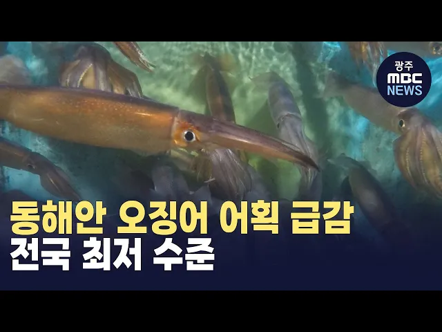 (앵커)강원 동해안의 대표 어종하면오징어를 빼놓을 수 없죠.하지만 최근 들어 어획량이 급감해위판 물량도 4년 만에 1/10으로 쪼그라들며전국 최저 수준으로 추락했습니다.MBC강원영동배연환 기자가 보도합니다.(기자)바다에서 직접 잡은 수산물만 파는강릉 주문진어민수산시장.상가 수조에서 오징어 수십 마리가헤엄치고 ...