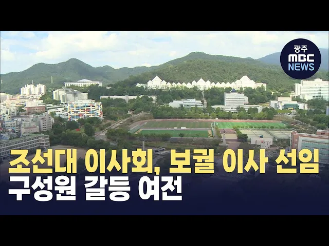 조선대학교 법인 이사 선임을 둘러싸고재단 이사회와 학교 구성원들 사이의 갈등이 여전히 계속되고 있습니다.학교법인 조선대학교는 오늘(4일) 이사회를 열고 故 김무영 이사의 후임으로 참여자치 21 공동 대표를 역임한 정채웅 변호사를 선임했습니다.이에 대해 범조선인대책위원회는 낙하산식 이사선엄을 반대한다며 이...