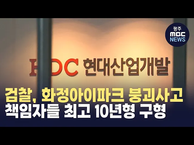 7명의 사상자가 발생한 광주 화정아이파크 붕괴 사고와 관련해, 검찰이 책임자 등에게최고 징역 10년을 구형했습니다.검찰은 오늘(4) 광주지법에서 열린 결심공판에서 현대산업개발 측 전 현장소장인 이 모씨에게 징역 10년을, 전 대표이사인 권 모씨에겐 징역 7년을 구형하는 등 총 10명의 현대산업개발 측 피고인에게 징...