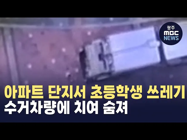 (앵커)광주의 한 아파트 단지에서 초등학생이 후진하던 쓰레기 수거차량에 치여 숨졌습니다.운전자는 경찰에아이를 미처 보지 못했다고 진술했습니다.천홍희 기자가 보도합니다.(기자)광주의 한 아파트 단지.나무 밑에서 초등학생이 걸어 나오고,쓰레기 수거 차량이 옆 도로를 지나인도 위로 올라갑니다.차량은 잠깐 멈춰 ...