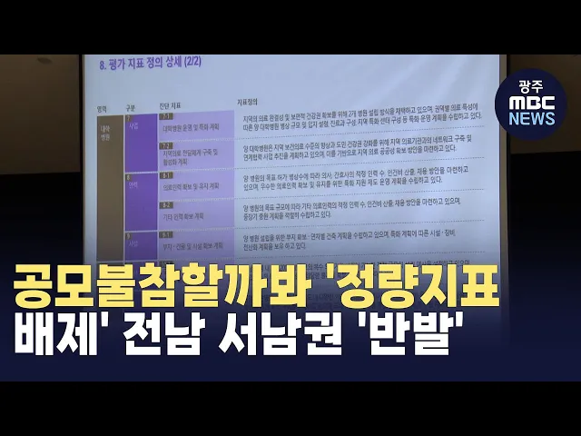 (앵커)전남국립의대선정 평가지표를 두고 역차별 논란이 확산되고 있습니다.목포시는 오늘(30)공공의료지표와 34년간 이어온 의대유치 노력이 평가지표에서 배제됐다며반발하고 있습니다.김 윤 기자가 취재했습니다.(기자)전남국립의대선정 용역사가 의대공모에서 공공의료지표 등 정량평가를 배제한 이유는 '이해득실이 너...