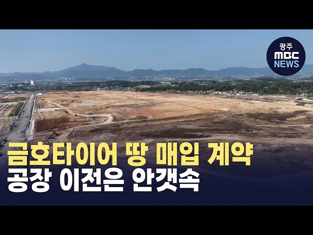 (앵커)금호타이어가 광주공장 이전을 위해땅 매입 계약을 체결했습니다.하지만 공장 이전이 당장은 쉽지 않아 보입니다.여건이 성숙하지 않았기 때문입니다.윤근수 기자입니다.(기자)금호타이어 광주공장 이전 예정지입니다.함평군 월야면에 있는 빛그린산단으로산업단지 기반 공사가 진행 중입니다.금호타이어가 이 땅을 ...