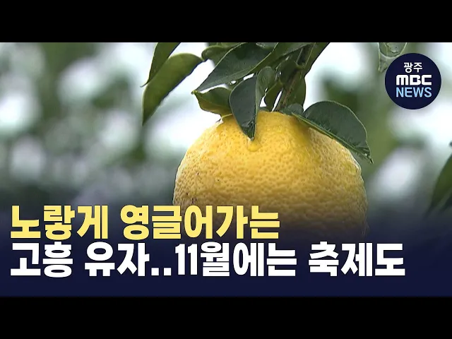 (앵커)요즘 고흥에서는 수확을 앞둔 유자가한창 영글어가고 있습니다.올해는 풍부한 일조량에 작황도 좋다고 하는데요.수확 시기에 맞춰 다음 달에는 유자축제도 열립니다.김단비 기자입니다.(기자)바다와 맞닿은 고흥 풍양면의 유자농장입니다.나뭇가지마다 유자가 촉촉이 빗물을 머금었습니다.지금은 설익어 군데군데 보...