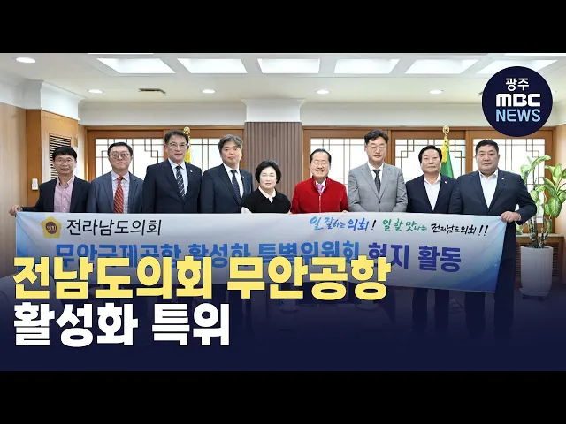 전남도의회 무안국제공항 활성화 특별위원회가최근 부산과 대구를 찾아 국제공항 활성화 협업을 약속했습니다.무안, 목포 등을 지역구로 둔 9명의 도의원으로 구성된 특위는 홍준표 대구시장 등과 만나장거리 국제 노선 취항 노하우와 공동 여객·물류 유치 활동 등을 협의했습니다.무안국제공항 활성화를 위해 조직된 특위...