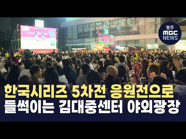 한국시리즈 5차전 응원전으로 들썩이는 이시각 김대중센터 야외광장