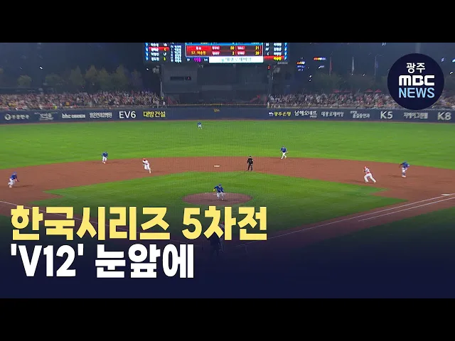 (앵커)기아 타이거즈가 12번째 한국시리즈 제패에단 1승 만을 남겨놓은 가운데 ...이시간 현재 삼성 라이온즈와 5차전이 펼쳐지고 있습니다.광주기아 챔피언스 필드에 나가있는한신구 기자를 연결해 자세한 소식 알아봅니다.한 기자, 경기는 어떻게 진행되고 있나요?(기자)지금 5회 말 공격이 진행되고 있는데요.양 팀 모두...