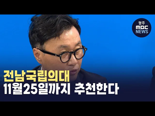 (앵커)전남국립의대 설립방식과 추천일정이 최종 결정됐습니다.국립의대설립 용역을 맡고 있는 에이티커니코리아는 통합의대와 '공모'를 통한 추천 절차를동시에 진행하고 다음 달인 11월25일까지 정부에 대학을 추천하기로 했습니다.김 윤 기자가 보도합니다.(기자)전남국립의대설립 용역을 맡고 있는에이티커니코리아가 ...