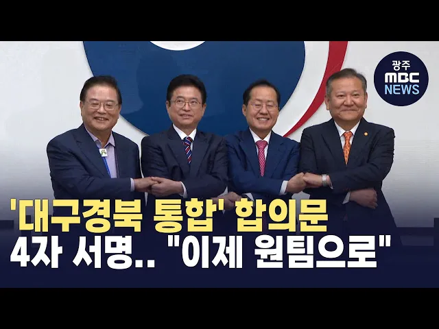 (앵커)대구경북 행정통합 추진을 위한최종 합의문이 지난 월요일 발표됐습니다.입장차를 좁히지 못해한때 무산 위기로 내몰렸던 통합 논의가다시 속도를 내게 됐습니다.남은 절차와 과제는 무엇인지안동문화방송 엄지원 기자가 보도합니다.(기자)이상민 행정안전부 장관과이철우 경북도지사, 홍준표 대구시장,지방시대위원...