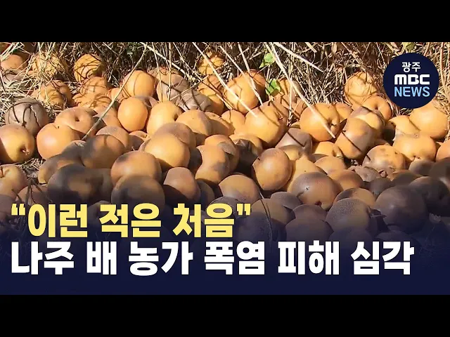 (앵커)전국적으로 기후 변화로 인한농작물 피해가 계속 발생하고 있습니다.올해는 기록적인 폭염이 가을까지 이어져, 그 피해가 더 큰데요.특히 우리 지역은 배 농가들이 어려움을 겪고 있습니다.김초롱 기자의 보도입니다. (기자)나주 금천면에 있는 배 농가입니다.배를 감싼 봉지를 펼쳐보니,배 한쪽이 짙게 얼룩져 있습...