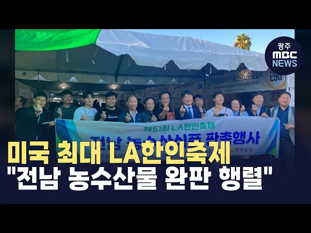 전라남도의 농수산식품이미국 최대 한인 축제인 LA한인축제에서완판되는 등 큰 호응을 얻었습니다.지난달 26일부터 나흘간 열린 이번 축제에는 전남도내 수출기업 20곳이 참여해, 광양 매실 장아찌 상품이첫날 완판을 기록한데 이어 김과 미역 등이 잇따라 모두 팔리며K-푸드 열풍을 증명했습니다.미국은 일본에 이은 전남...