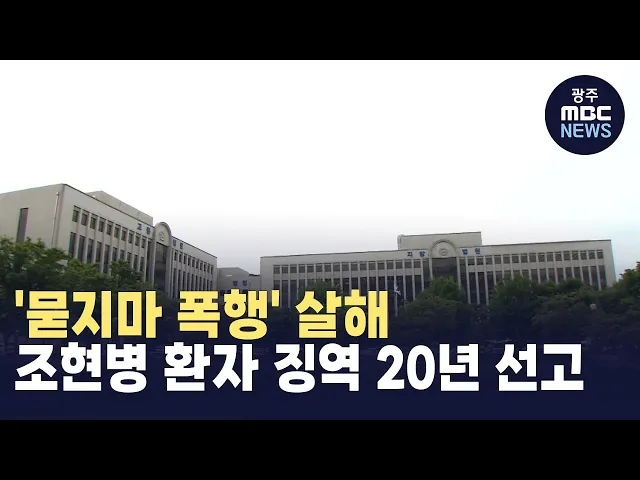 노부부를 폭행해 한 명을 사망하게 한 조현병 환자에게 중형이 선고됐습니다.광주지방법원 박재성 부장판사는 40대 박모 씨에게 징역 20년 등을 선고하고,"누구나 범죄 피해자가 될 수 있는 '묻지 마 범죄'에 대해 엄한 책임을 묻는 게 마땅하다"고 밝혔습니다.박 씨는 지난 4월 광주 북구 오치동의 한 아파트에서 70대 노...