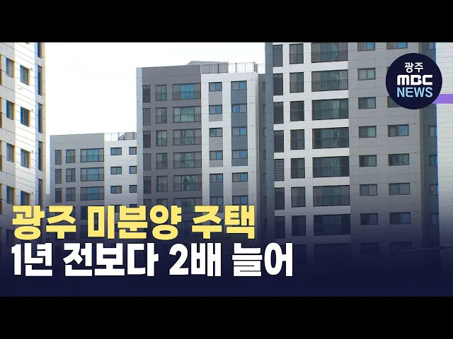 광주지역의 미분양 주택이 1년 전보다 두배 가량 늘었습니다.국토교통부가 민주당 정준호 의원에게 제출한자료에 따르면지난 7월 기준으로 광주의 미분양 주택은 1,370 가구로1년 전 672 가구에 비해 96.3% 증가했습니다.또 미분양 주택 가운데 준공 후에도 팔리지 않은 악성 미분양은 262가구로 집계됐습니다.전남의 경우...