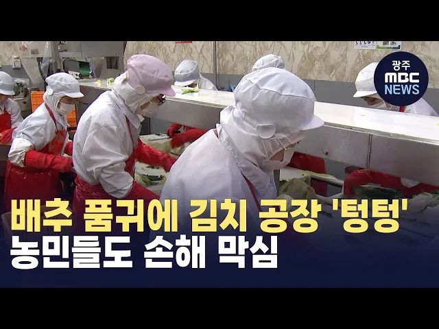 (앵커) 배추 품귀에 김치로 수요가 몰리면서김치 공장들이 배추를 구하지 못해발을 동동 구르고 있습니다.하지만 농사를 망친 농민들은배춧값이 올라도 더 손해를 보고 있다고합니다.앞으로 배추 재배가 더 쉽지 않을 거란 예측도 나오고 있습니다.MBC충북 허지희 기자가 보도합니다.(기자)농협이 운영하는 김치 공장입니다...
