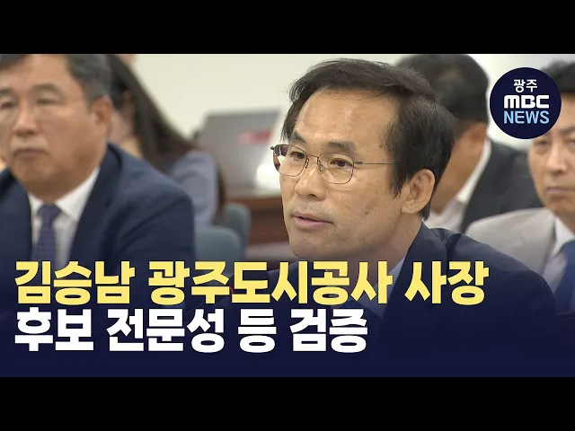 김승남 광주도시공사 사장 후보자를 검증하기 위해 오늘(23일) 열린 인사청문회에서,후보자의 전문성과 임기 도중 하차 등에 대한 우려가 제기됐습니다.안평환 광주시의회 의원 등은김 후보가 기업 운영 경험 등이 없어서 전문성이 떨어진다는 우려를 제기했고,임기 중에 선거에 출마할 의향이 있는지질문했습니다.이에 대...
