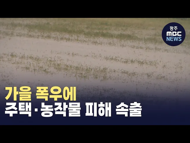 역대급 가을 폭우로 전남 지역에서는주택과 농작물 등 피해가 속출하고 있습니다.전라남도는 오늘(23) 오전 기준진도와 장흥 등 8개 시군에서 주택 496동이침수 피해를 입었고, 7천7백여 헥타르 면적의 벼가 쓰러졌다고 설명했습니다.또, 고흥에서는 한우 축사 3동이 물에 잠겼고닭 38만 마리와 오리5만 9천여 마리,전복 종...