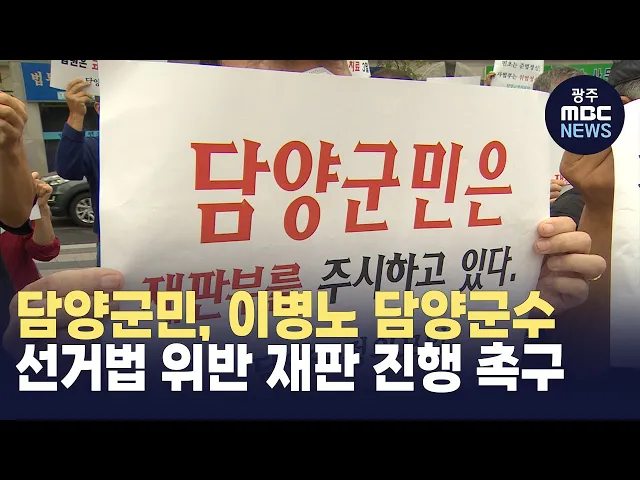 담양군민 50여 명이 오늘(23일) 오전 광주고등법원 앞에서 집회를 열고, 이병노 담양군수의 선거법 위반 재판을신속히 진행할 것을 촉구했습니다.이들은 "법원이 선거법 기한을 지키지 않고 재판을 끌고 있다"며,"내년 2월 이후에 확정판결이 되면재선거가 불가능해, 권한대행체제로 가야한다"고 주장했습니다.지난 2022년 ...