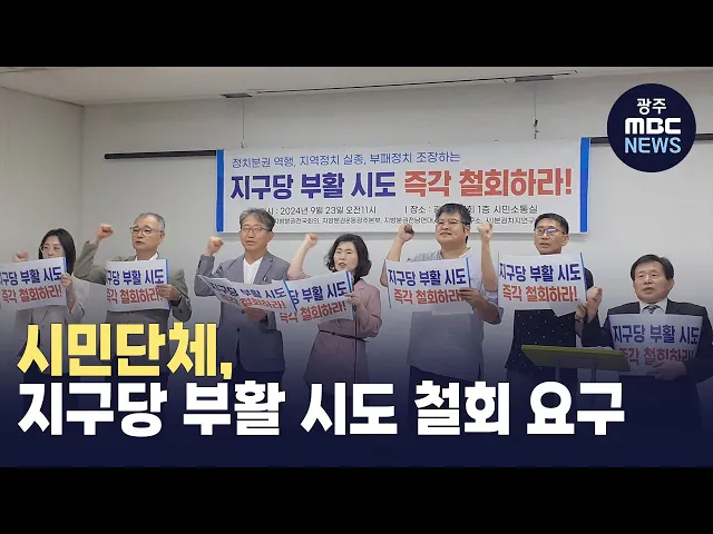 시민사회단체 지방분권전국회의 등 5곳이 지구당 부활에 대한 반대 의사를 밝혔습니다.이들은 오늘(23일) 오전광주시의회에서 기자회견을 열고,지구당 부활 시도는 정치 분권에 역행하는 일이라며, 국민의힘과 더불어민주당에이를 철회하라고 요구했습니다.이들은 비대한 관료 정당 중심에서 선진국형 원내정당 정치로 전환...