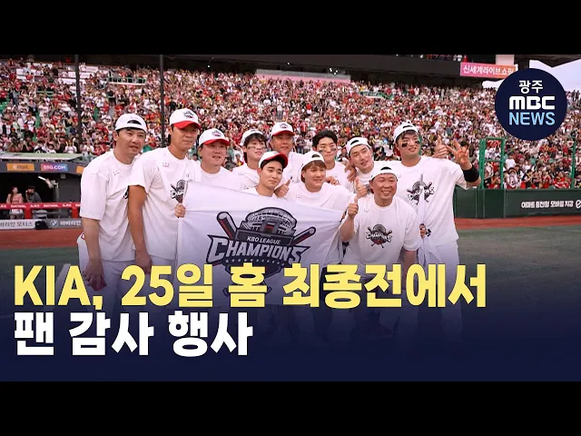 KIA 타이거즈가 정규시즌 마지막 홈 경기가 열리는 오는 25일,팬들을 위한 감사 행사를 진행합니다.기아타이거즈는 광주-기아 챔피언스 필드에서 열리는 롯데전에 앞서김도영, 정해영 선수가 참가하는팬 사인회를 진행하고,경기 시작 직전에는 우승 세리머니를 펼칠 예정입니다.또 차량과 티셔츠를 경품으로 증정하는 등다...