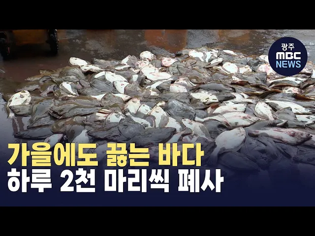 (앵커)9월 이례적 폭염에 수온이 30도 넘게 치솟으면서 양식장 피해도 커지고 있습니다.어민들은 광어가 하루에 2천 마리 넘게 죽어나갈 정도로 심각한 상황이라고 호소하고 있습니다.김규희 기자가 보도합니다.(기자)양식장 바닥에 광어들이 산더미처럼 쌓여 있습니다.모두 폐사해 물 밖으로 건져낸 겁니다."하루 폐사량만...