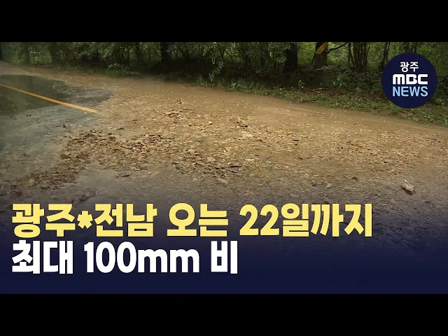 일부 지역의 호우특보 속에 모레까지 많은 비가 내리겠습니다. 현재 구례와 여수, 광양 3개 시군에 호우주의보가 내려진 가운데 광주와 전남지역에는 주말까지30~80밀리미터의 비가 더 내리겠습니다. 특히 남해안에는 120mm이상 많은 비가 예보됐습니다.어젯밤부터 내린 비로 인해오늘 오후 55시까지 도로와 주택침수, 나무...