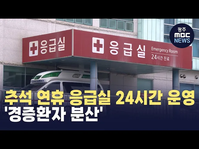 (앵커)닷새나 되는 이번 추석 연휴에 혹시나 아프면 어쩌나 걱정이 많으시죠.광주시와 전라남도가 응급실 대란을 막기 위해경증환자를 분산 시키는 비상 의료 체계를 가동하기로 했습니다.보도에 김영창 기자입니다.(기자)광주의 한 2차 종합병원 응급실.응급 환자들이 치료를 받고 있습니다.이 병원은 이번 추석에도 휴진 ...