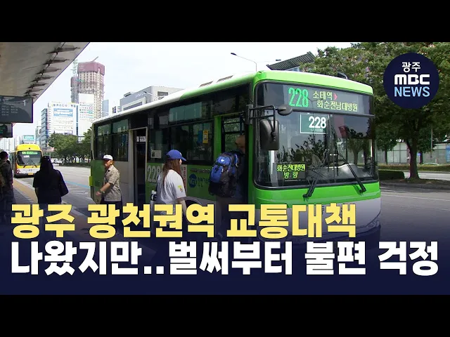 (앵커)광주시가 복합쇼핑몰이 들어서는 광천권역에 대한 교통대책을 11일 발표했습니다.도시철도와 버스 등 대중교통뿐 아니라 차량이 증가에 대비한도로 확장 등의 내용도 있었는데요.시민 불편에 대한 구체적인 대책은 아직 나오지 않아서, 우려가 나오고 있습니다.김초롱 기자의 보도입니다. (기자)더 현대 복합쇼핑몰이...