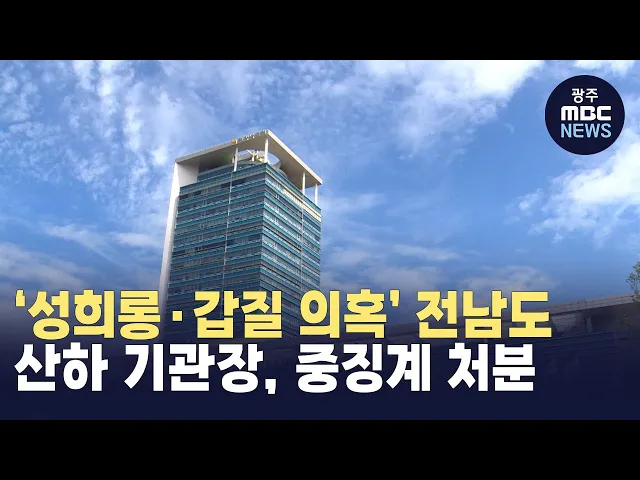 직원들에게 성희롱과 갑질을 했다는의혹이 불거진 전라남도 산하 기관장이 정직 1개월의 중징계를 받았습니다.전라남도 감사관실은 올해초 관련 제보로 조사에 착수한 결과해당 기관장에 대해 징계 처분을 요구했고, 최근 인사위원회에서 품위 유지 의무 위반을이유로 정직 1개월을 의결했다고 밝혔습니다.이와 관련해 해당...