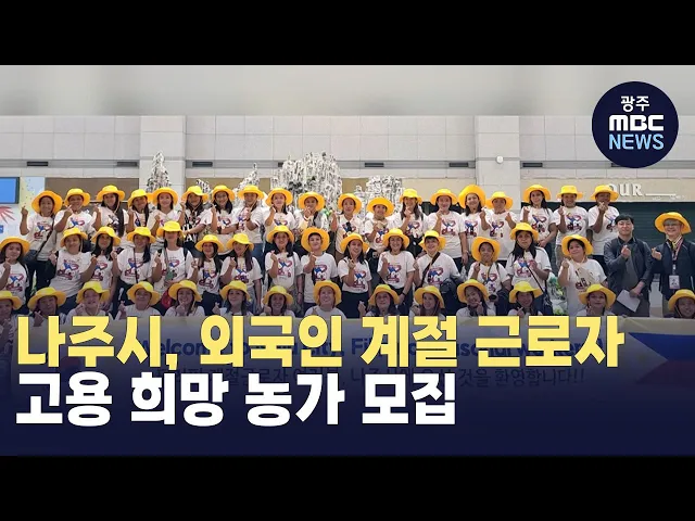 나주시가 내년 상반기에 외국인 계절근로자를 고용하길 희망하는 농가를 모집합니다.농가는 지자체간 협약을 통해 해외에서 입국한 외국인 근로자들을 계절 근로 단기 취업 비자 등을 통해 합법적으로 고용할 수 있습니다.다음 달 10일까지 읍면동 행정복지센터에서 신청할 수 있으며, 나주시는 배정 인원이 확정되면내년 3...