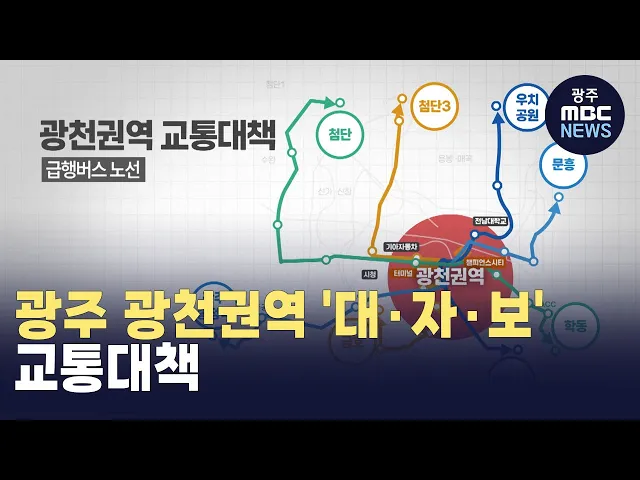 (앵커)광주 광천권역에 복합쇼핑몰이 들어오면가장 우려되는 것이 바로 교통문제였죠.어제(11일) 광주시가 이에 대한 교통대책을 발표했는데요.광주시 핵심 정책인 이른바 ‘대·자·보'에 맞게,대중교통 수단과 보행자 도로 등이 생겨날 예정입니다.김초롱 기자의 보도입니다. (기자)광주 광천권역은더 현대 복합쇼핑몰 등 전...